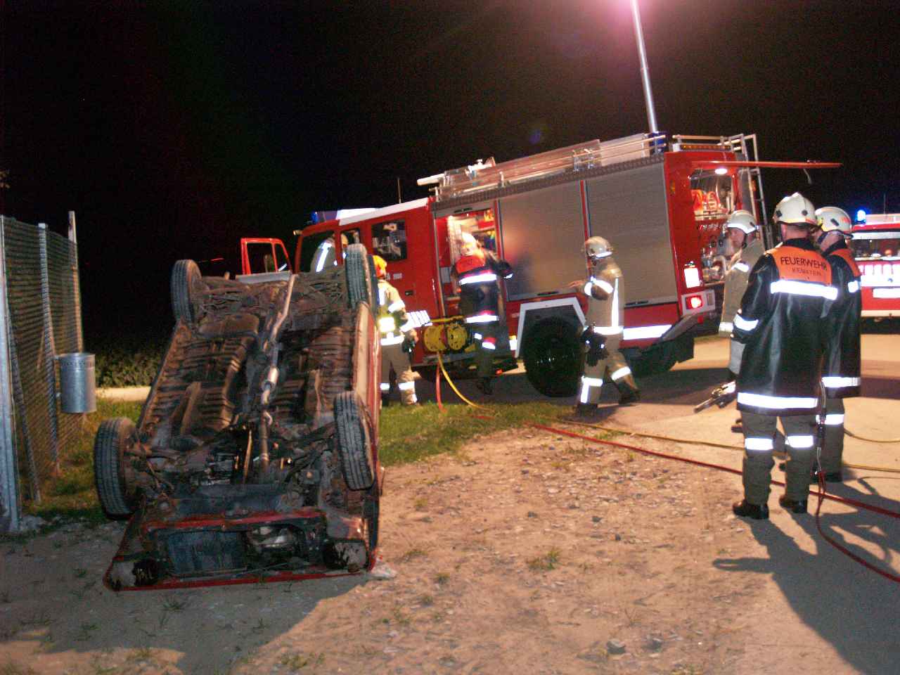 Auch der 2. Zug begann diesen Montag mit den Herbstübungen. Am Übungprogramm standen 2 Gruppenübungen. Eine Gruppe bearbeitete ein verunfalltes Fahrzeug während die zweite Gruppe einen Brand im Michelfeld übernahm. Bei der Brandübung wurde unter anderem ein Tiefbrunnen im Michelfeld auf seine Fördermenge getestet. Das Ziel der technischen Übung war die Stabilisierung eines am Dach liegenden Fahrzeuges um anschließend eine Personenbergung durchzuführen.