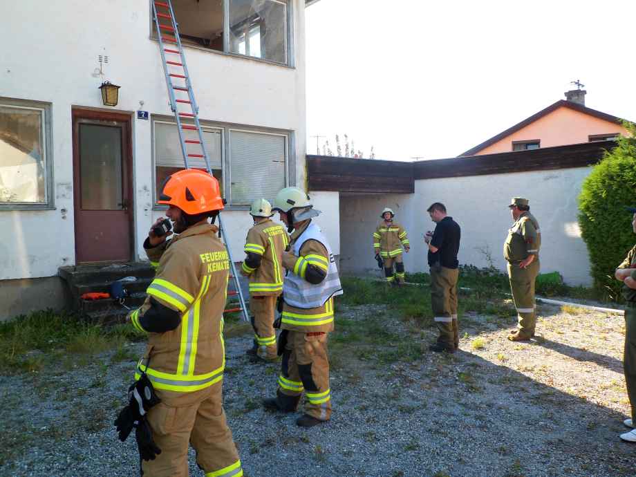 Übungsannahme war ein Brand in einem Einfamilienhaus, aus dem 4 Personen vom Atemschutztrupp zu retten waren.