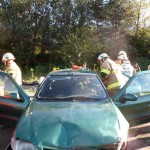 Bei der 2. Übung wurde ein Verkehrsunfall bei dem sich ein Auto in Seitenlage befand. Im Auto befand sich nur der Lenker des Autos. Dieser wurde so schonend wie möglich und sehr schnell geborgen.