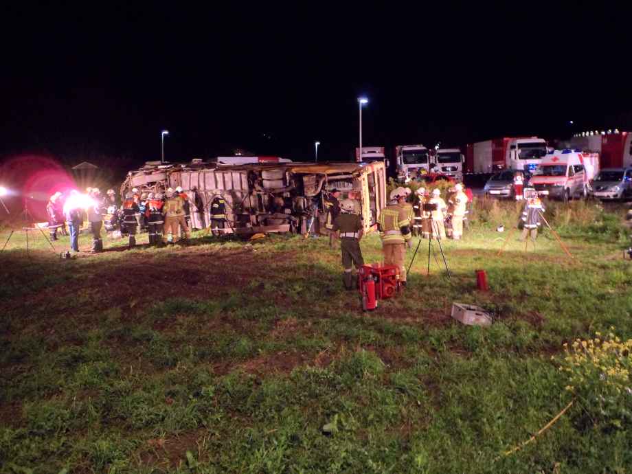 Abschließende Gemeinschaftsübung – Verkehrsunfall mit Personenbus und 2 PKWs: