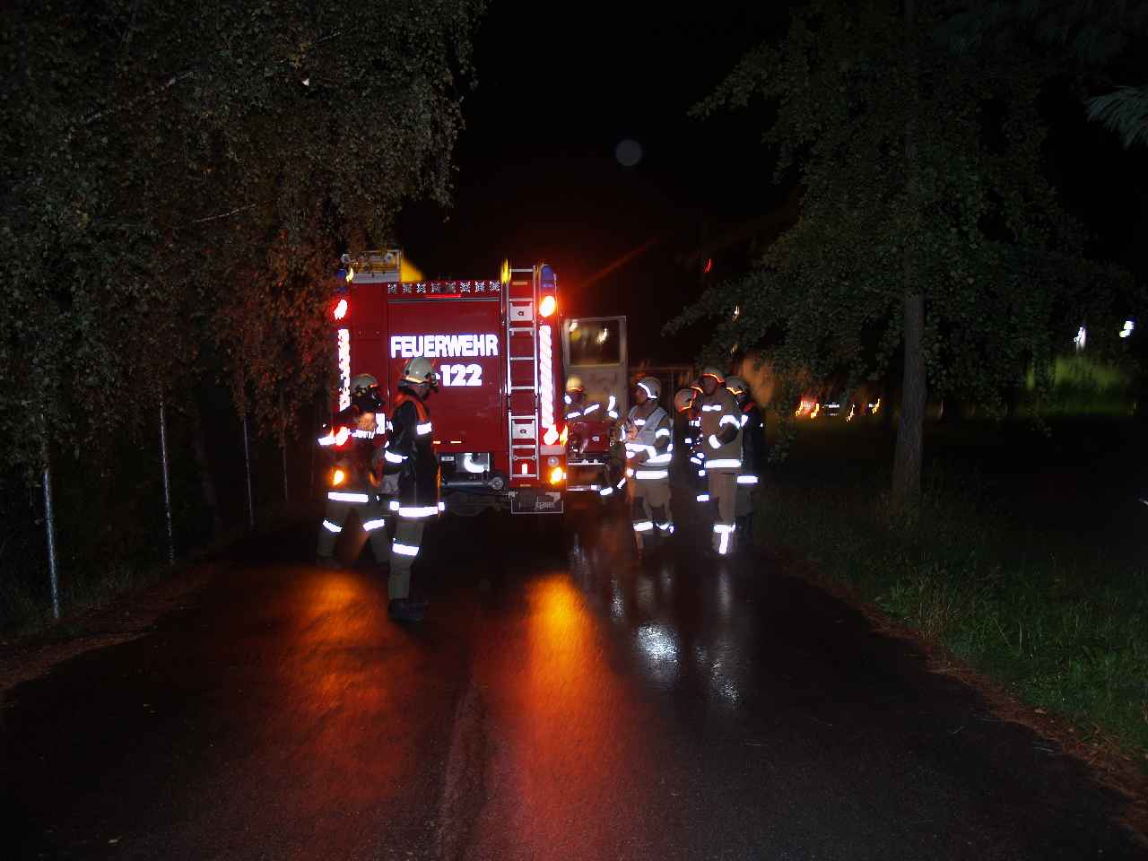 Heute stand eine Zugsübung des 2. Zuges auf dem Probenplan. Übungsszenario war ein Gefahrengutunfall mit Personenschaden bei der Beladerampe der Firma Kemacos. Es wurde sofort ein Atemschutztrupp zur Erkundung der Lage zum Unfallort vorgeschickt. Der Bereich wurde großräumig abgesperrt. Nach Ermittlung der Art des gefährlichen Stoffes wurden die Rettungs- und Schutzmaßnahmen eingeleitet, der Verletzte geborgen und mit den zur Verfügung stehenden Mitteln dekontaminiert. Im Anschluss wurde die Unfallstelle mittels Schaum abgedeckt um ein weiteres Ausdampfen des Stoffes einzudämmen. Die Wasserversorgung wurde vom LF über den Tiefbrunnen der Firma Kemacos bereitgestellt.