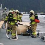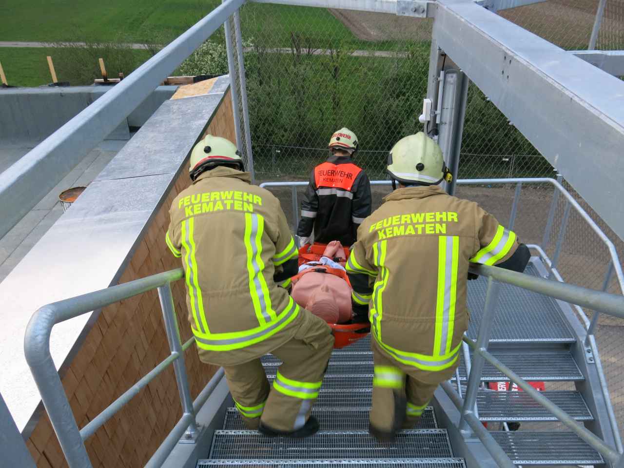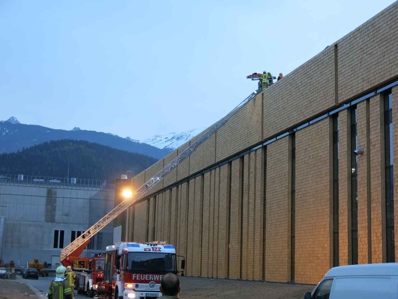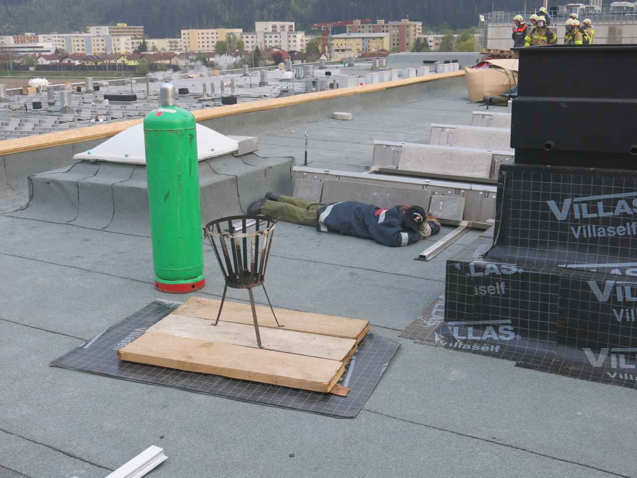 Heute fand in Völs eine Gemeinschaftsübung beim Neubau der M-Preis Bäckerei/Fleischerei statt. Übungsannahme war ein Brand im oberen Stockwerk und auf dem Dach, welcher durch Bauarbeiten verursacht wurde. Mehrere verletzte Personen mussten über die Drehleiter bzw. das Stiegenhaus geborgen werden. Die Atemschutzträger waren auch mit verschiedenen Gefahrenstoffen (Gasflaschen) konfrontiert. Im Einsatz waren das KDO, TLF-A und LF mit 26 Mann der Freiwilligen Feuerwehr Kematen.