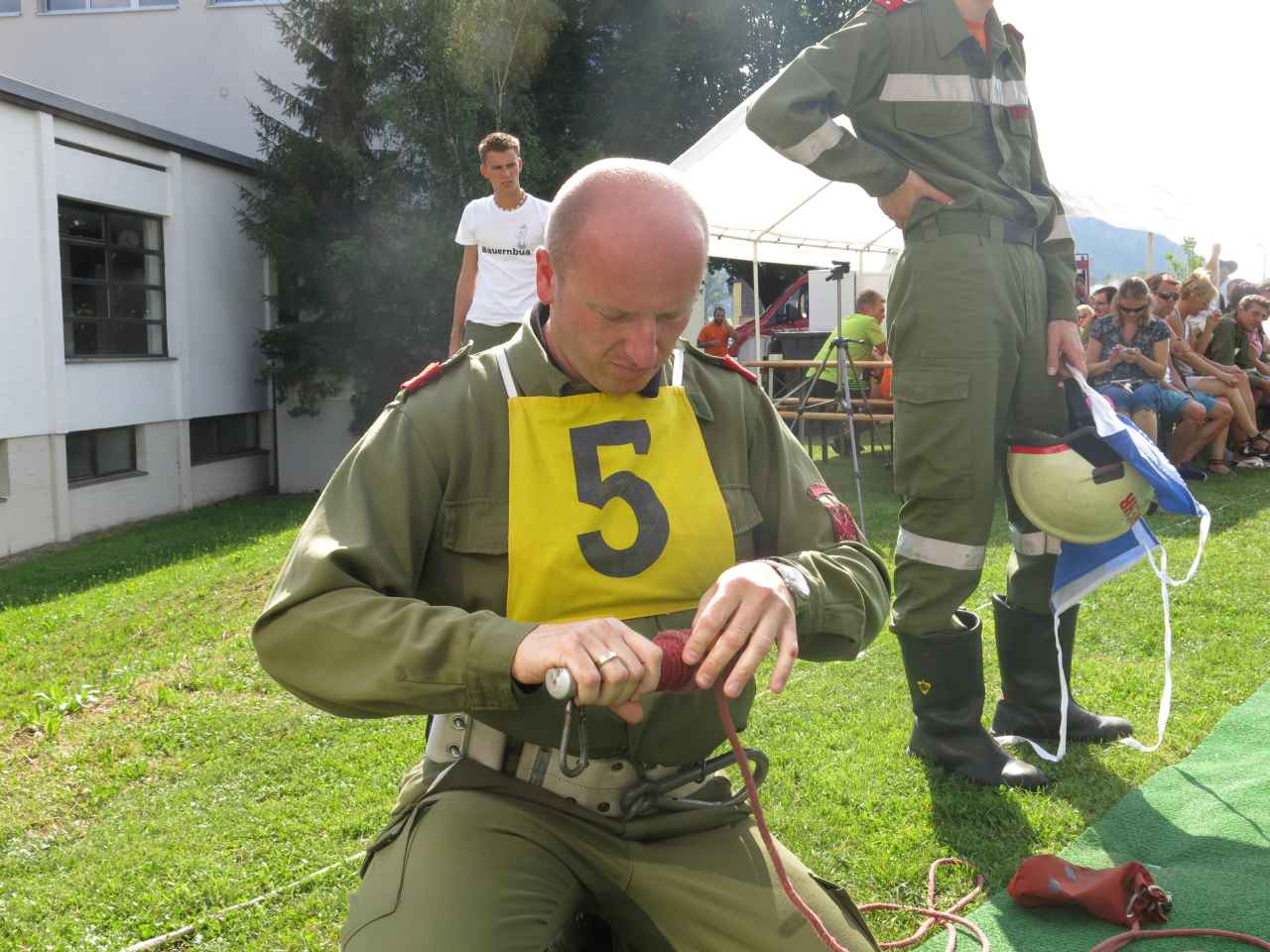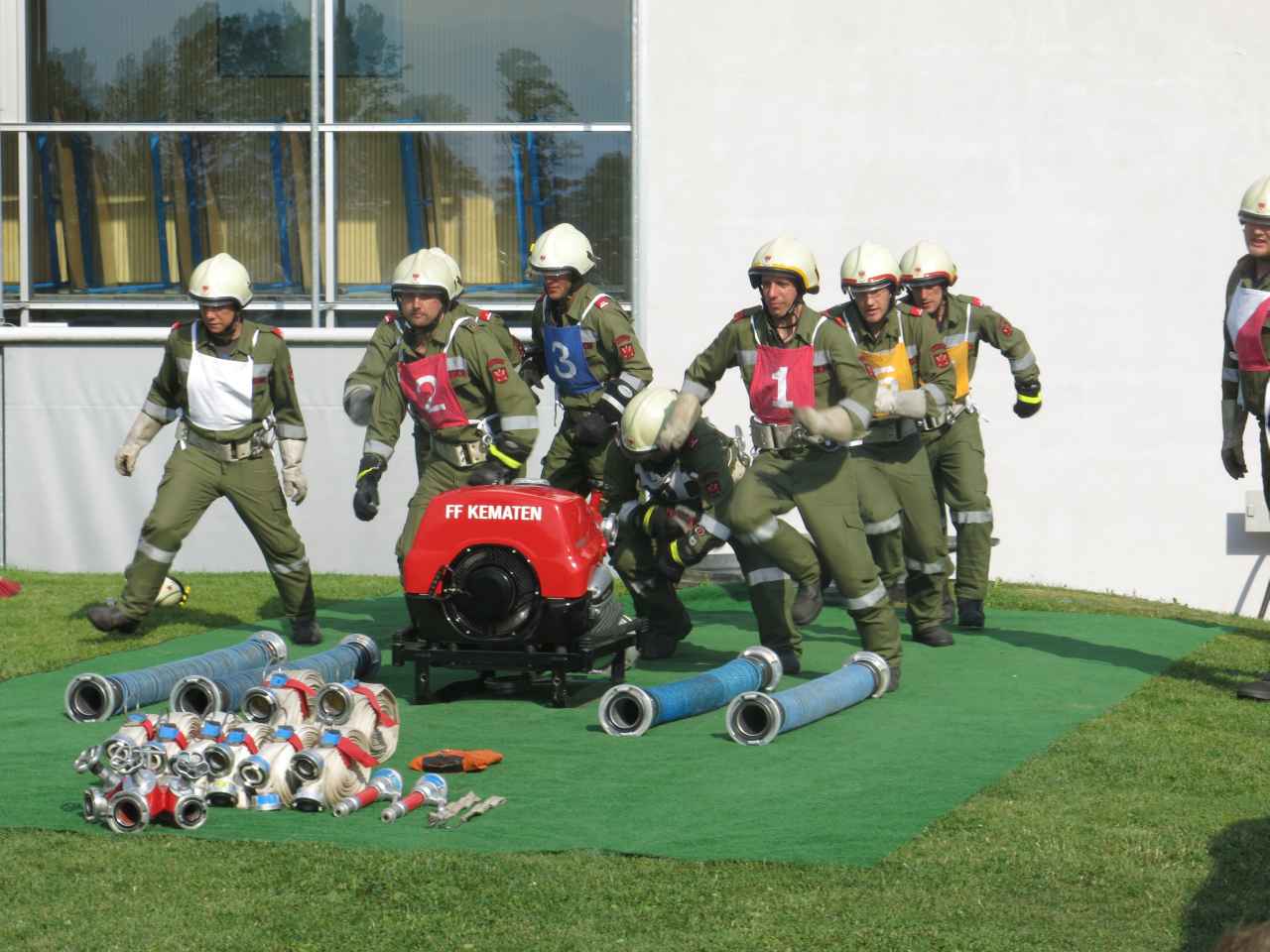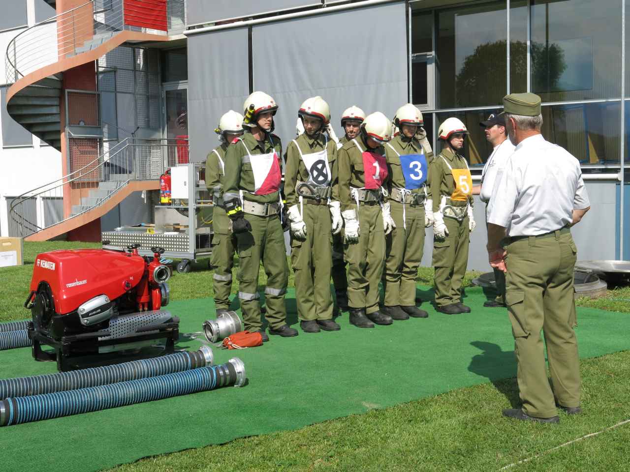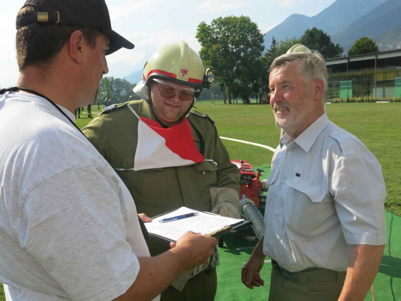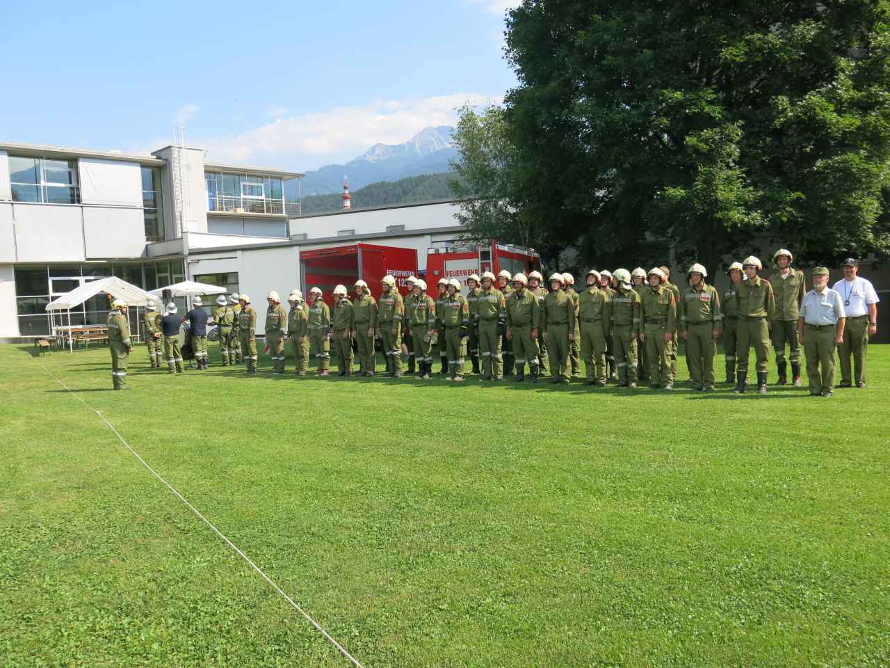 Nach dem offiziellen Einmarsch, für welchen sogar die “Feuerwehrmusikkapelle” aktiviert wurde, führten wir den Bewerb auf der Schulwiese durch. Es traten insgesamt 6 Gruppen an, auch die Feuerwehr Unterperfuss war mit einer Gruppe vertreten. Besonders danken möchten wir auch unseren beiden Bewertern Peter Larcher und Matthias Saurwein.