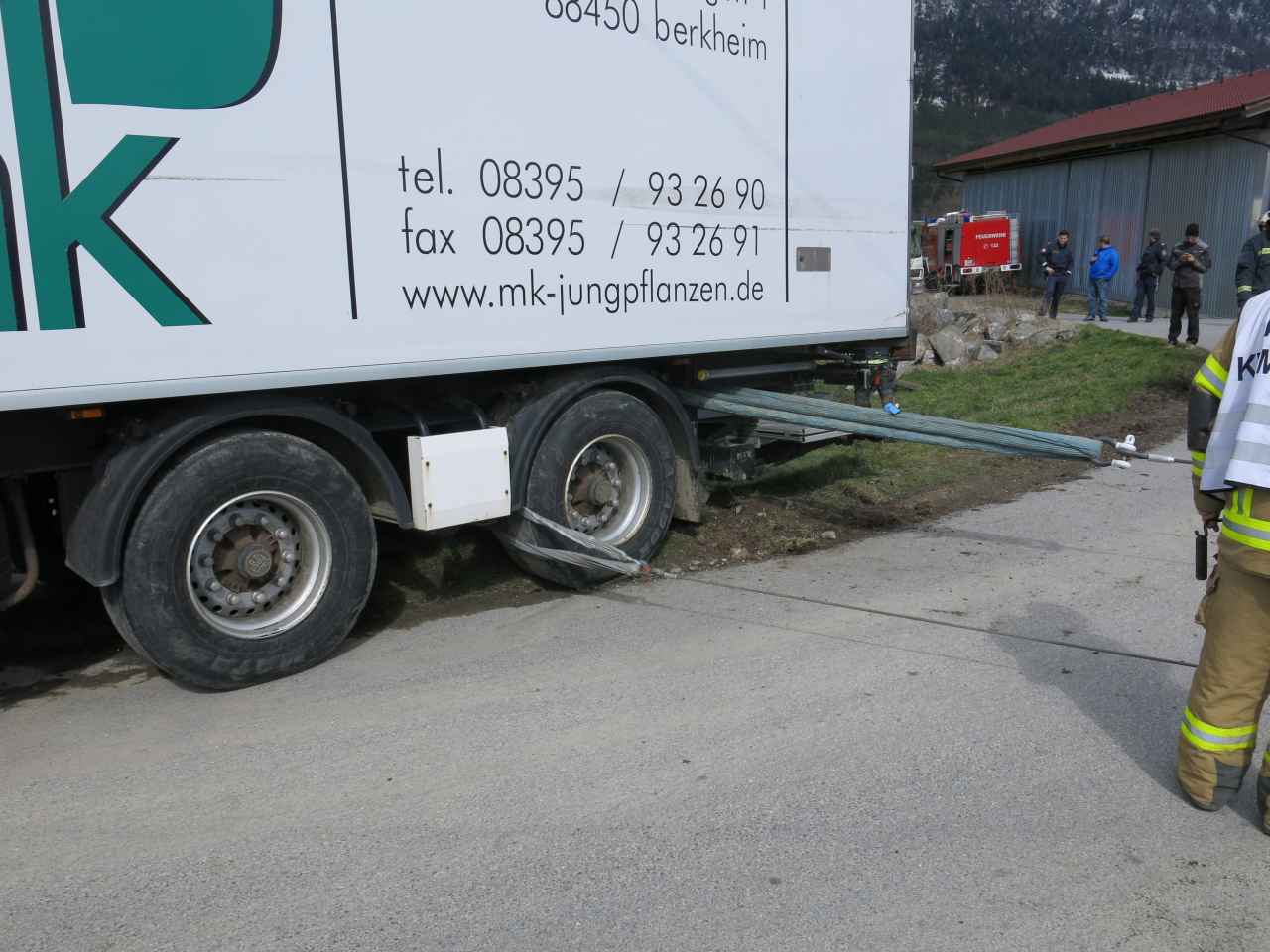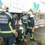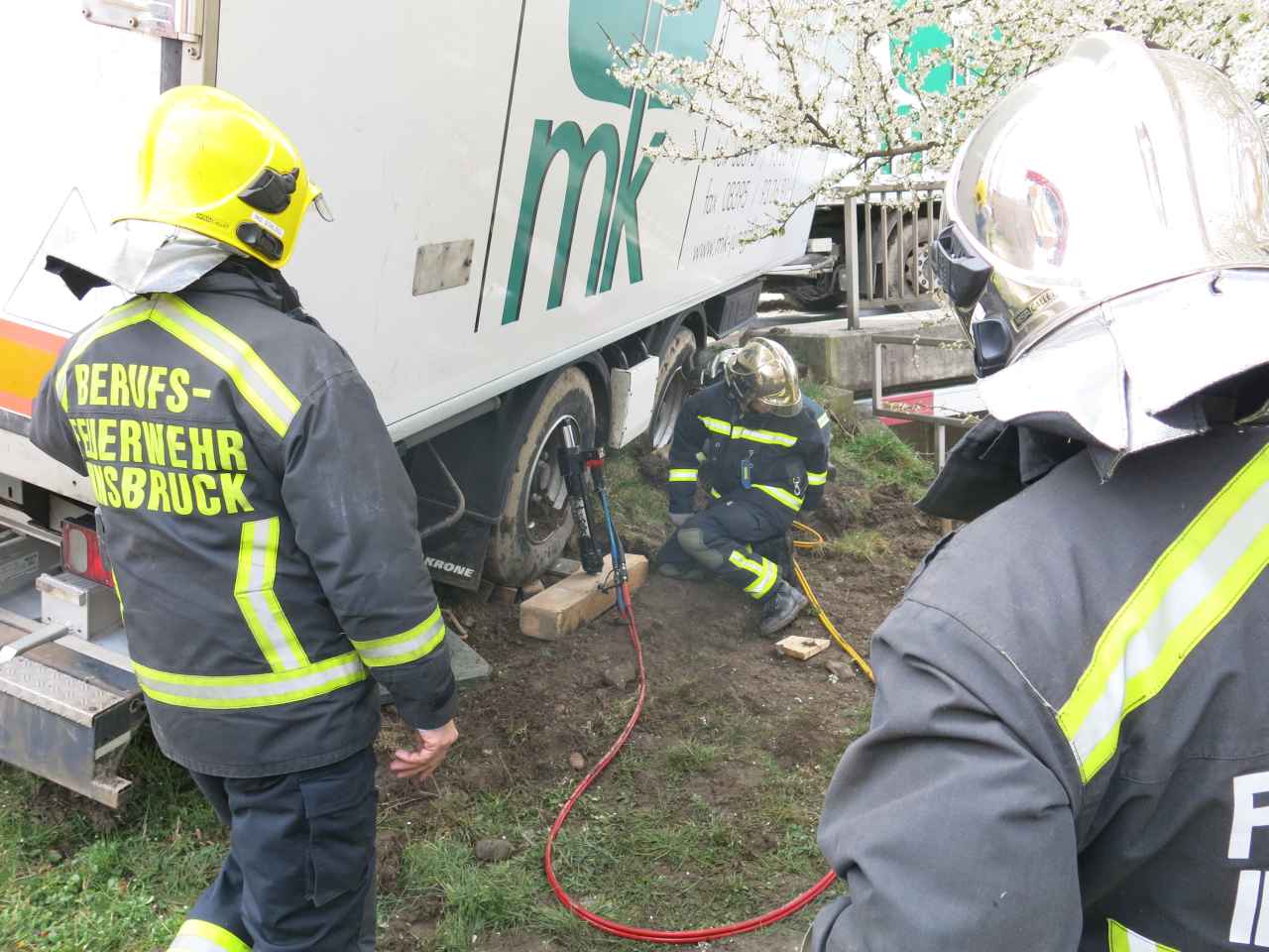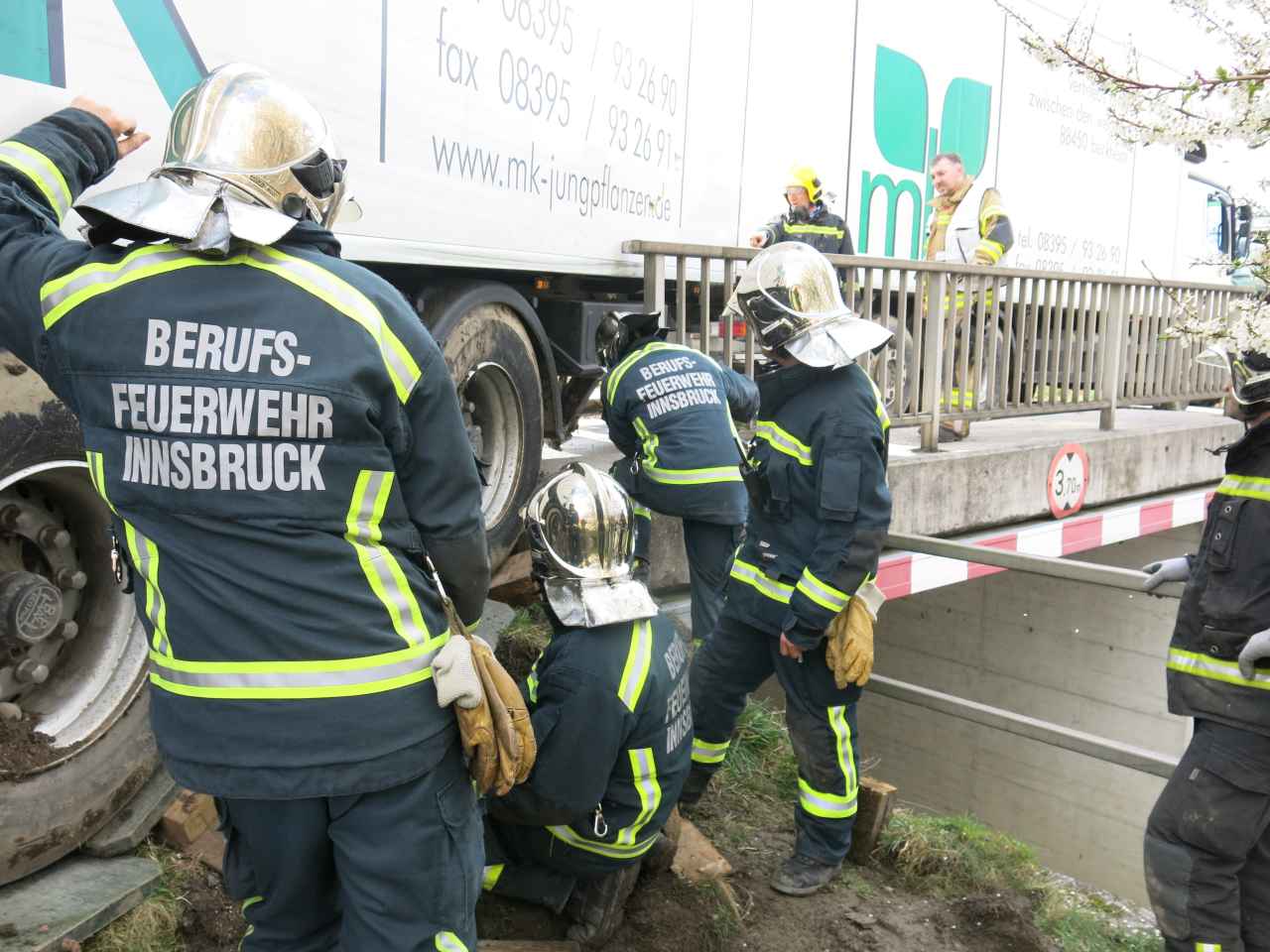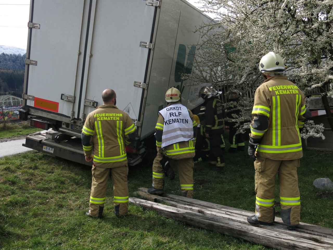 Um 10:30 Uhr erhielten wir die Meldung, dass ein LKW im Bereich Michlfeld umzustürzen drohte. Wir rückten mit RLF-A und KDO aus und stellten an der Unfallstelle fest, dass der Tandemhänger eines deutschen LKW in einer Kurve in den Straßengraben gerutscht war. Wir haben den Anhänger vor weiterem Abrutschen gesichert. Die Bergung konnte erst mittels schwerem Gerät durch die Berufsfeuerwehr In Insbruck erfolgen. Wir waren mit 4 Mann im Einsatz.