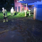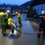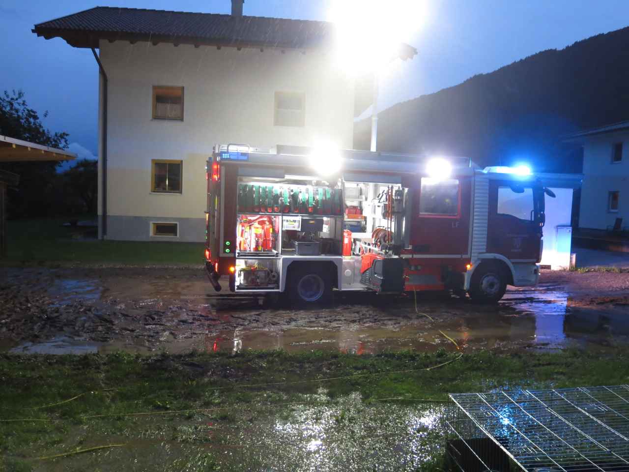 Im Anschluss wurden wir nach Ranggen zur Unterstützung der Kameraden vor Ort gerufen. Hier gab es mehrere Vermurungen im Ortsgebiet sowie mehrere Gebäude bei denen Keller unter Wasser standen. Wir halfen mit Mannschaft und Gerät (Wassersauger, Tauchpumpen, Schlammpumpen, Wasserschieber) mit um die Schäden so gering wie möglich für die Bewohner zu halten.
