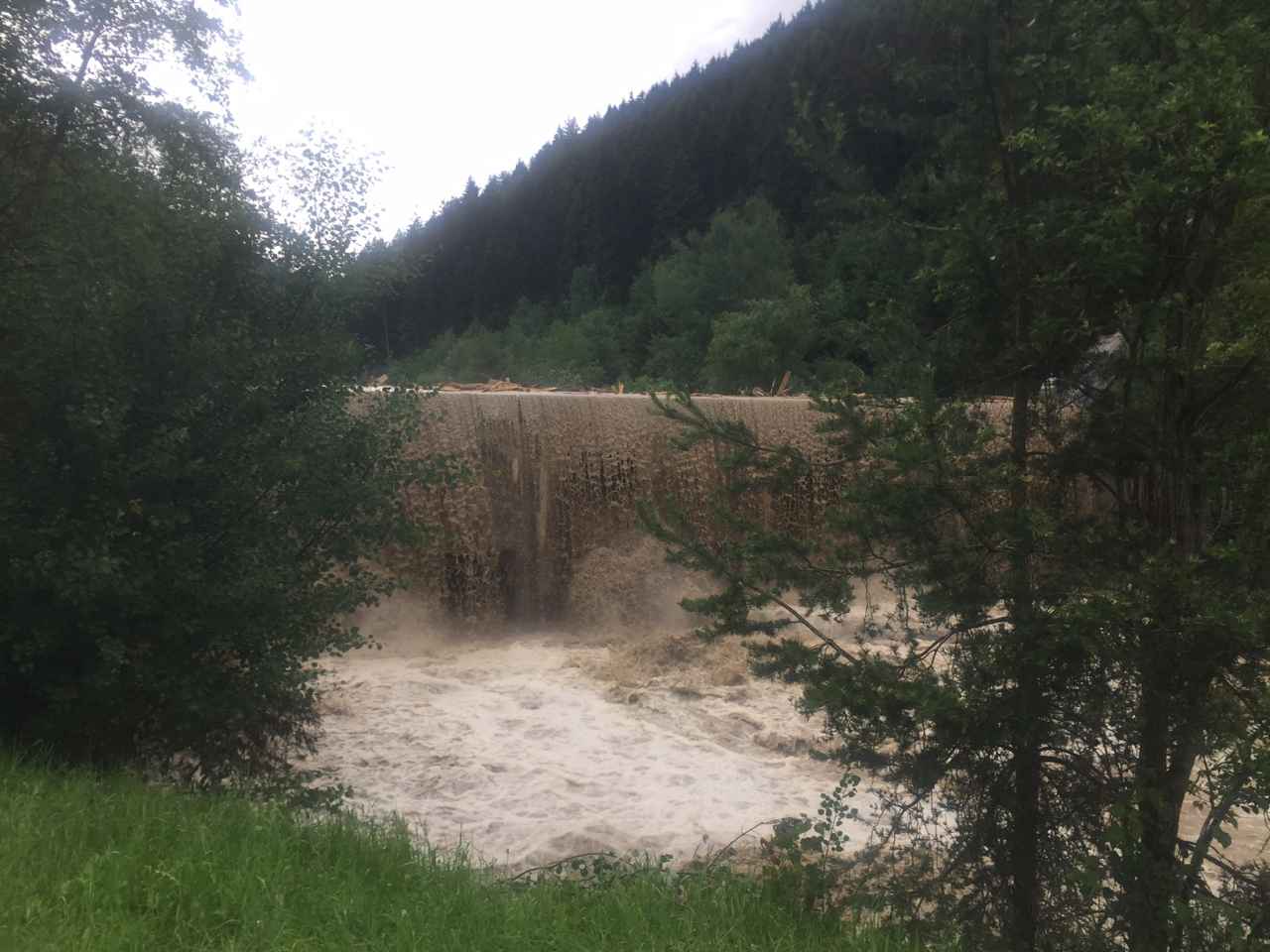 Nach den heftigen Regenfällen in den letzten Tagen kam es gegen 16:00 zu einer Verlegung der Melachverbauung im Geschiebebereich und zu einem Wassereintritt in einem der Kemater Kraftwerke. Mit Baggern konnten die verklausten Bäume kontrolliert weiterbefördert werden. Die Brücken wurden von uns entsprechend kontrolliert. Der Wassereinbruch im E-Werk wurde durch einen Graben und Sandsäcke umgeleitet. Das verbleibende Wasser abgepumpt. Wir führten die Kontrolle der Melach und das Auspumpen des Kraftwerkes im Schichtbetrieb die ganze Nacht bis zu Mittag des nächsten Tages fort. Wir waren mit allen Fahrzeugen und insgesamt ca. 35 Mann im Einsatz.