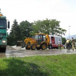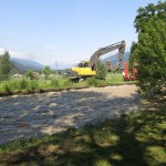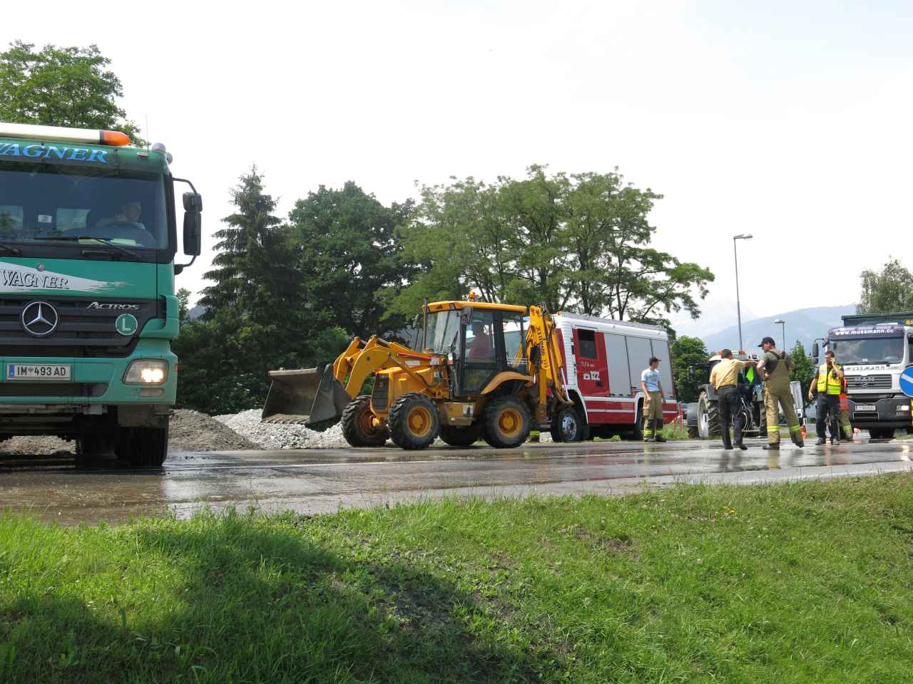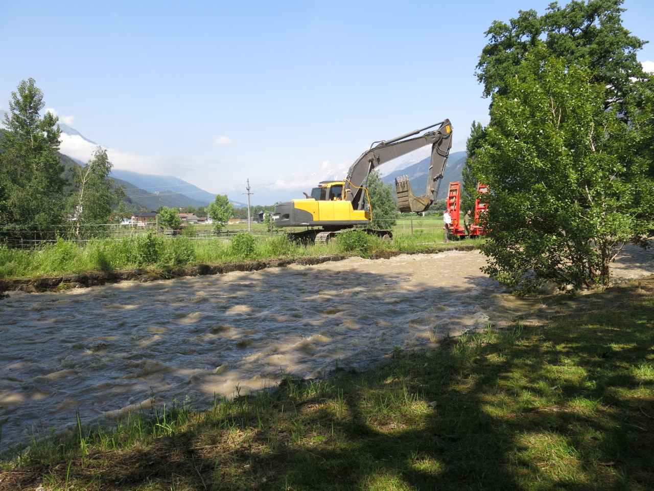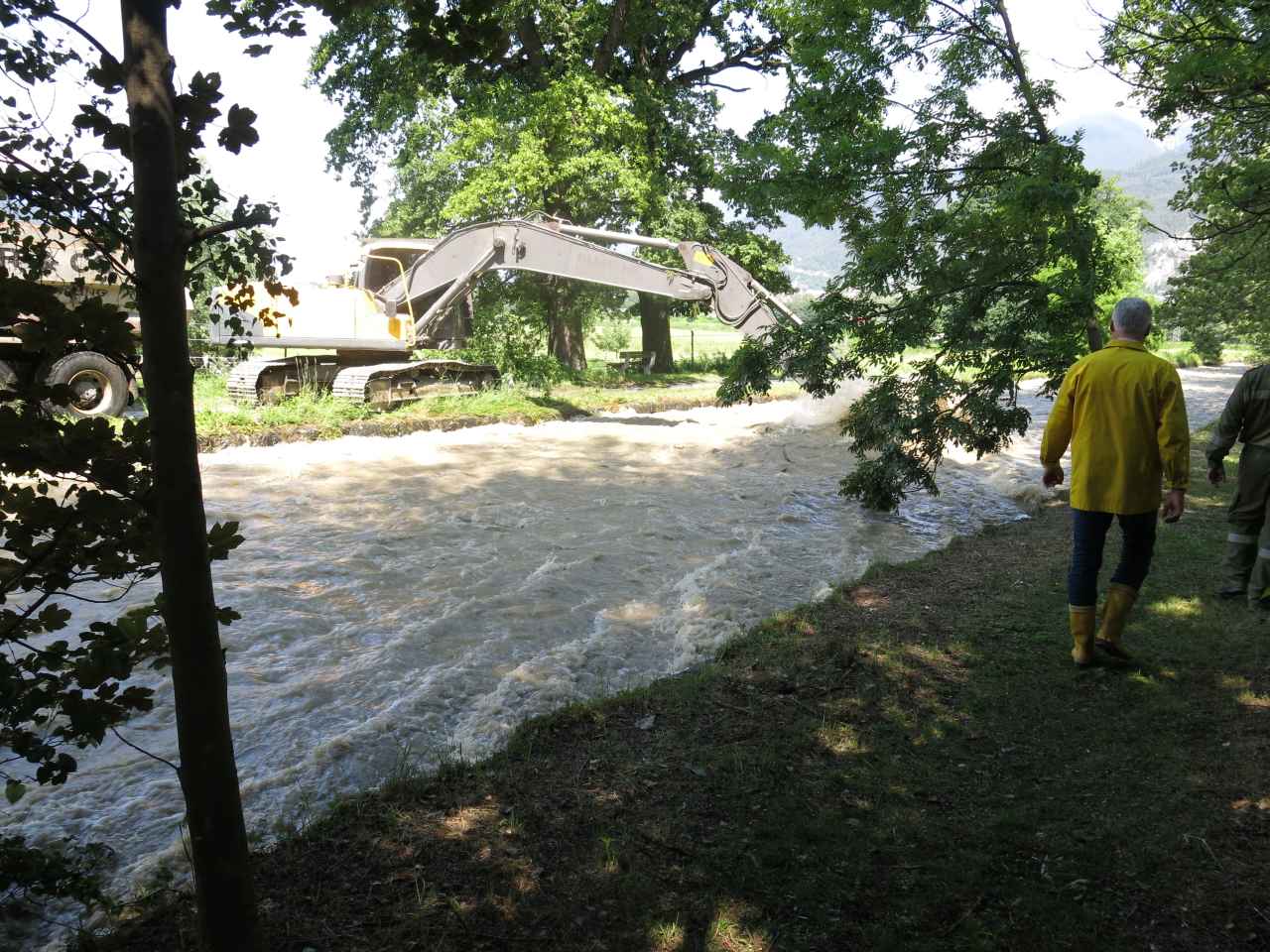 Durch die Ereignisse der letzten Tage kam es zu einer ausgeprägten Ablagerung von Material im unteren Anteil der Melach. Dadurch stieg der Wasserspiegel bis wenige cm unter die Verbauung. Um eine großräumige Überschwemmung zu verhindern wurden sofort mehrere Bagger organisiert die das Material ausschöpften. Im Bereich des neuen Einsatzzentrums wurde eine temporäre Deponie eingerichtet um das Material zwischenzulagern. Hierfür waren wir bis in die Abendstunden beschäftigt.