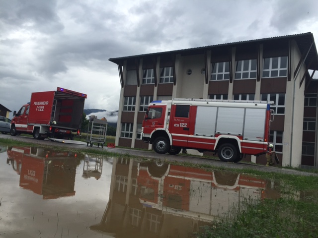 Nach dem heftigen Unwetter am Samstag Nachmittag wurde die Feuerwehr Kematen zunächst via Kommandoschleife im weiteren Verlauf mittels Sammelruf zu diversen Wasserschäden in Kematen alarmiert. Unter anderem war der Dorfplatz, einige Straßen, zahlreiche Privathäuser und auch die Neue Mittelschule betroffen. Wir rückten mit sämtlichen Fahrzeugen mit insgesamt ca. 30 Mann aus um die Einsätze entsprechend abzuarbeiten. Dabei wurden wir auch von der Feuerwehr Unterperfuss unterstützt. Gegen 19:15 konnten alle Fahrzeuge wir wieder in das Gerätehaus einrücken.
