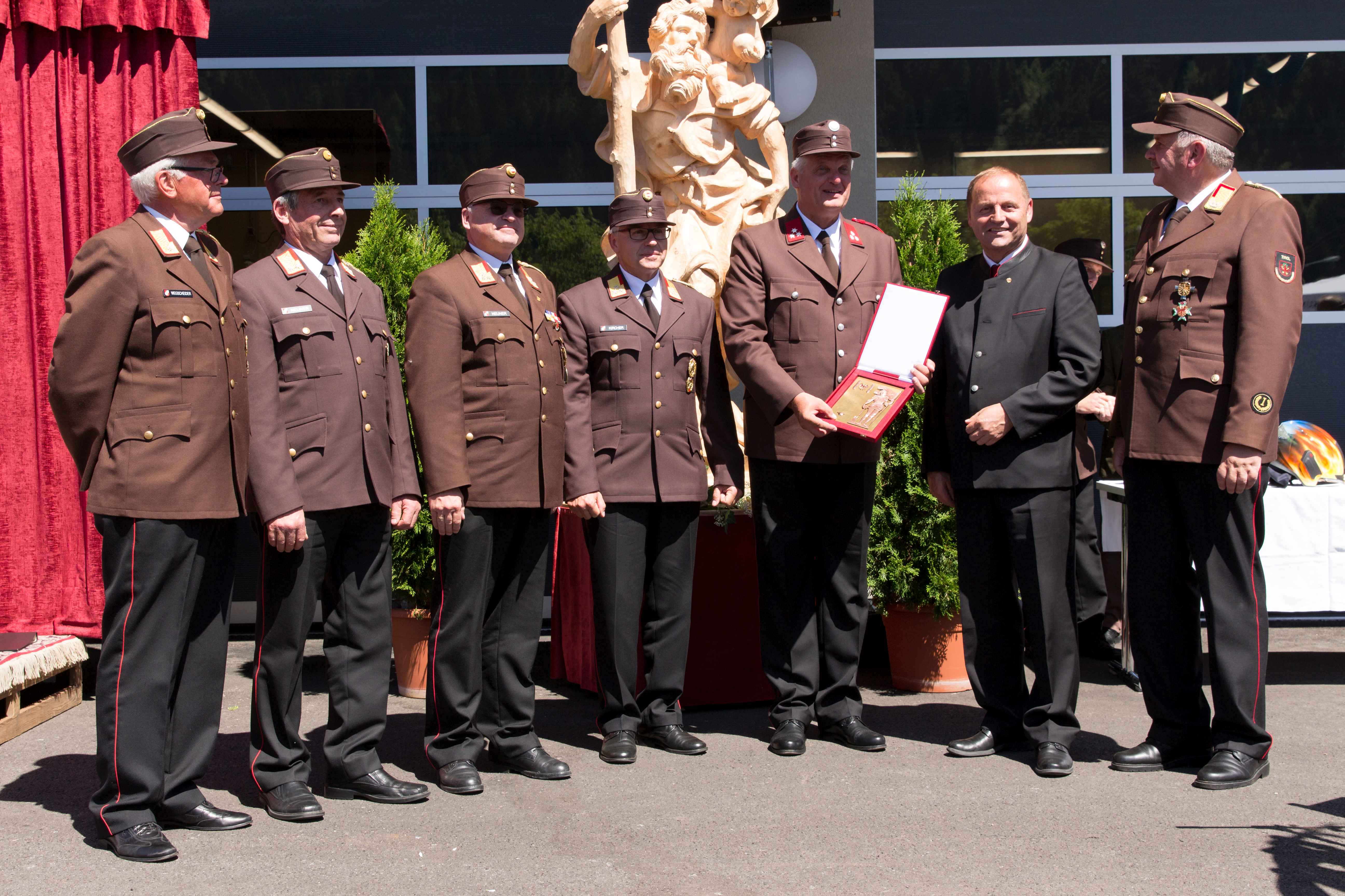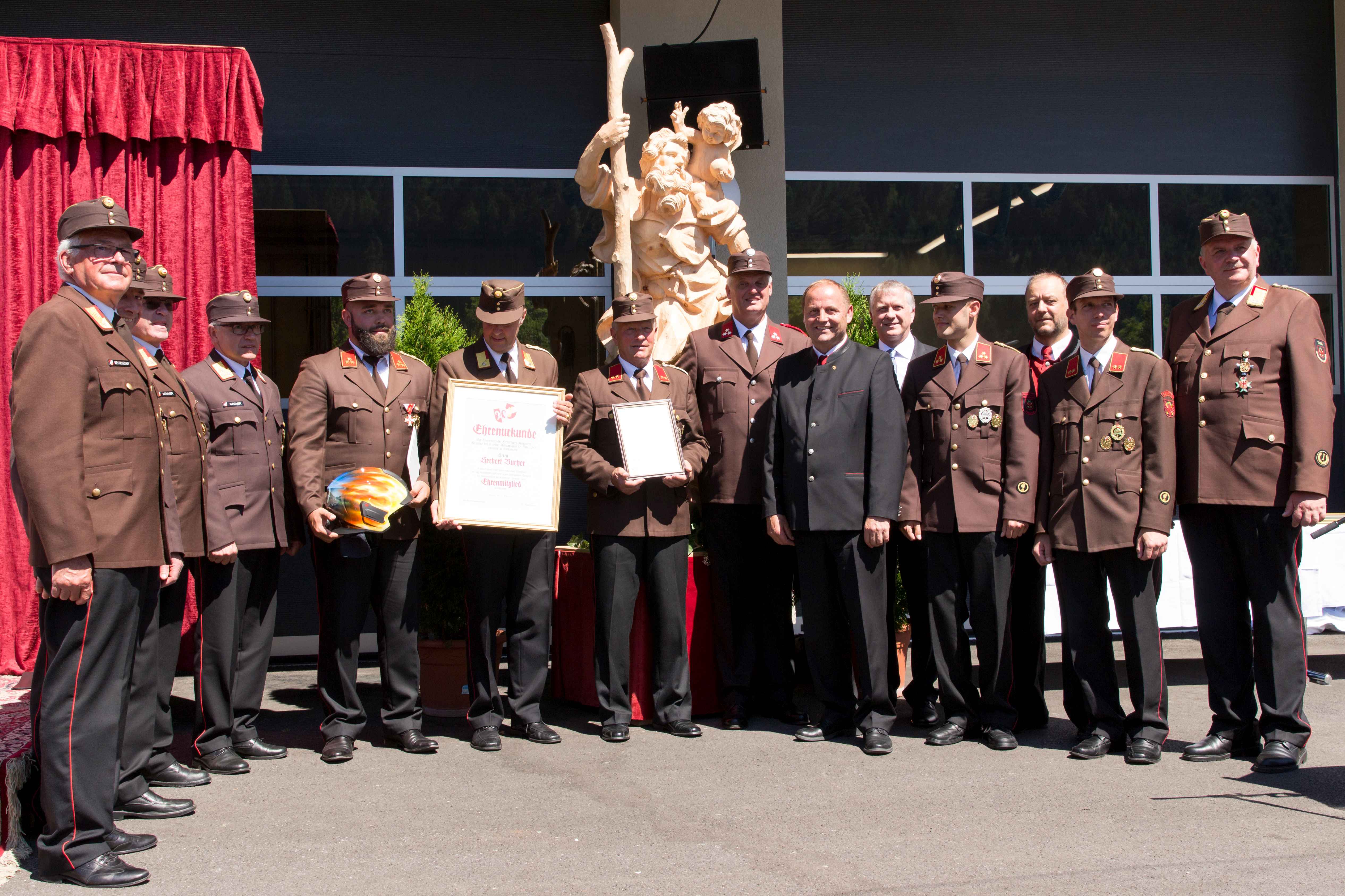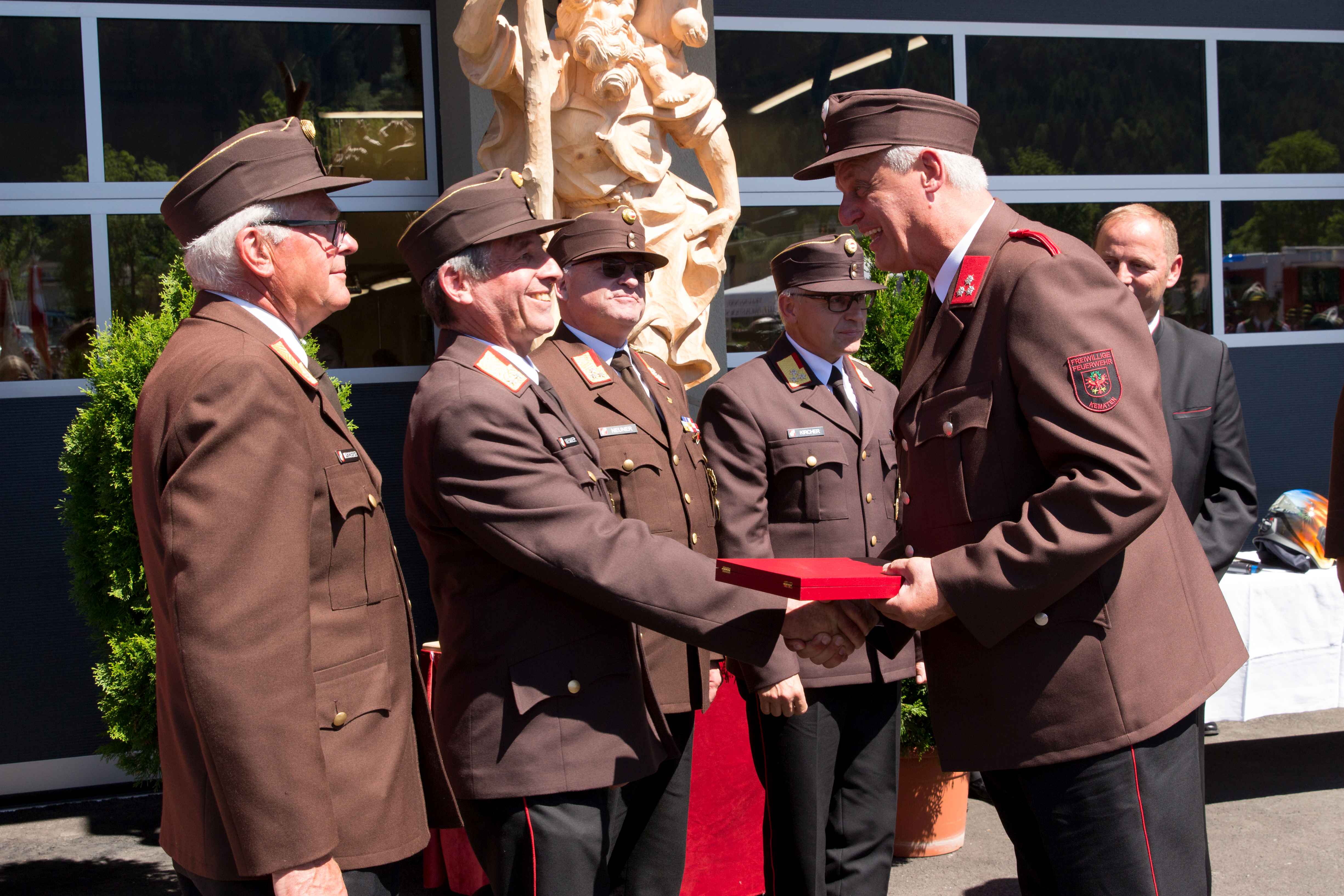 Die feierliche Stimmung wurde außerdem genützt um Ehrungen durchzuführen. So wurde Bgm. Rudolf Häusler für seine Verdienste um das Feuerwehrwesen mit der Florianiplakette ausgezeichnet. Bernhard Bucher, Kommandant a.D. erhielt das Verdienstzeichen in Gold Stufe 3 für die Verdienste, unter seiner Kommandantschaft rund um den Bau des Einsatzzentrums. Johann Haller, Kdt-Stv. a.D, erhielt für 40-jährige Tätigkeit im Feuerwehr- und Rettungswesen eine Verdienstmedaille verliehen. Alt-Kommandant Herbert Bucher wurde an diesem Tag zum Ehrenmitglied der Freiwilligen Feuerwehr Kematen ernannt. Die Ehrengäste, sowie das Kommando der Feuerwehr Kematen gratulierten den ausgezeichneten bzw. geehrten Kameraden und dankten für die Leistungen und Verdienste rund um das Feuerwehrwesen.