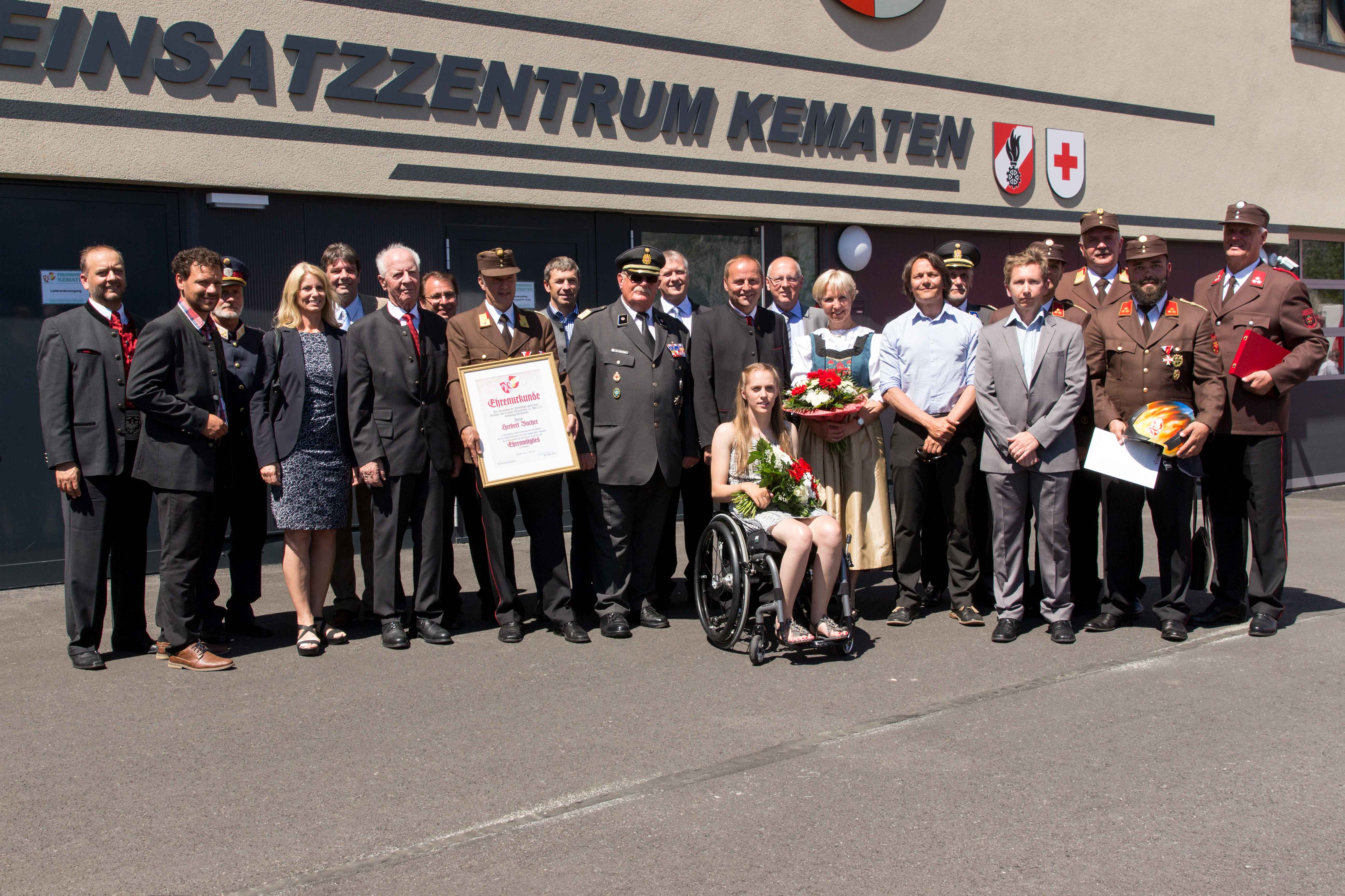 In einem großen Festakt wurde durch Herrn Pfarrer Dariusz Hrynyszyn die Einweihung des Einsatzzentrums, sowie die Segnung des Kommandofahrzeuges für die FF Kematen, eines historischen Leiterwagens, sowie der Fahne des Roten Kreuzes vorgenommen. Als Patinen fungierten Christine Häusler für das Einsatzzentrum und das Kommandofahrzeug, Kira Grünberg für die Fahne des Roten Kreuzes, sowie als Pate für die historische Leiter Bgm. Rudolf Häusler.