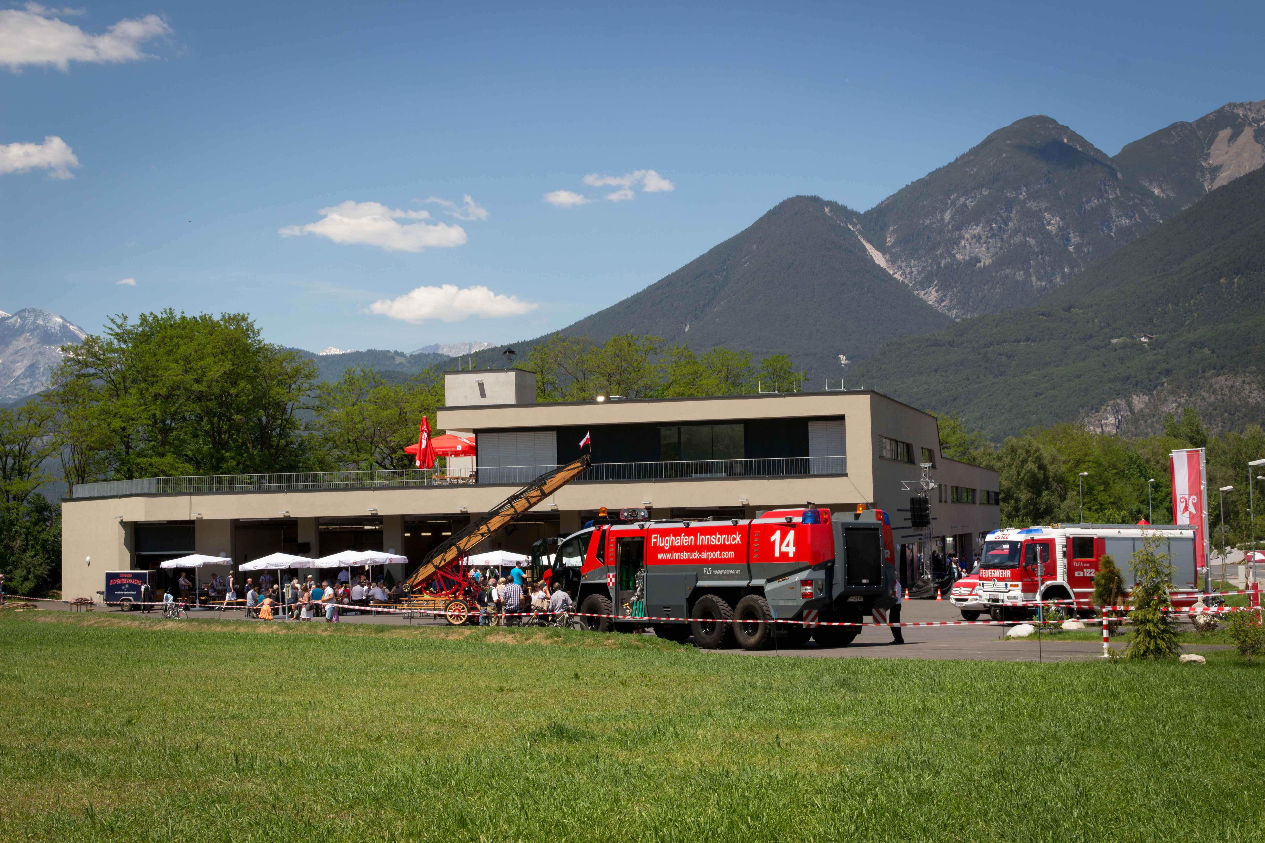 Am Nachmittag bot sich den Besuchern ein buntes Festprogramm, mit Schauübungen, Vorführungen der Polizeihundestaffel und Besichtigungen des Einsatzzentrums sowie der Fahrzeuge und Geräte. Eines der vielen Highlights war die Möglichkeit der Besichtigung eines Flughafenlöschfahrzeuges der Flughafenfeuerwehr Innsbruck. Der unterhaltsame Nachmittag wurde untermalen von den Live-Musik Gruppen „Die Alpenkavaliere“ und den „Bacon Pilots“.