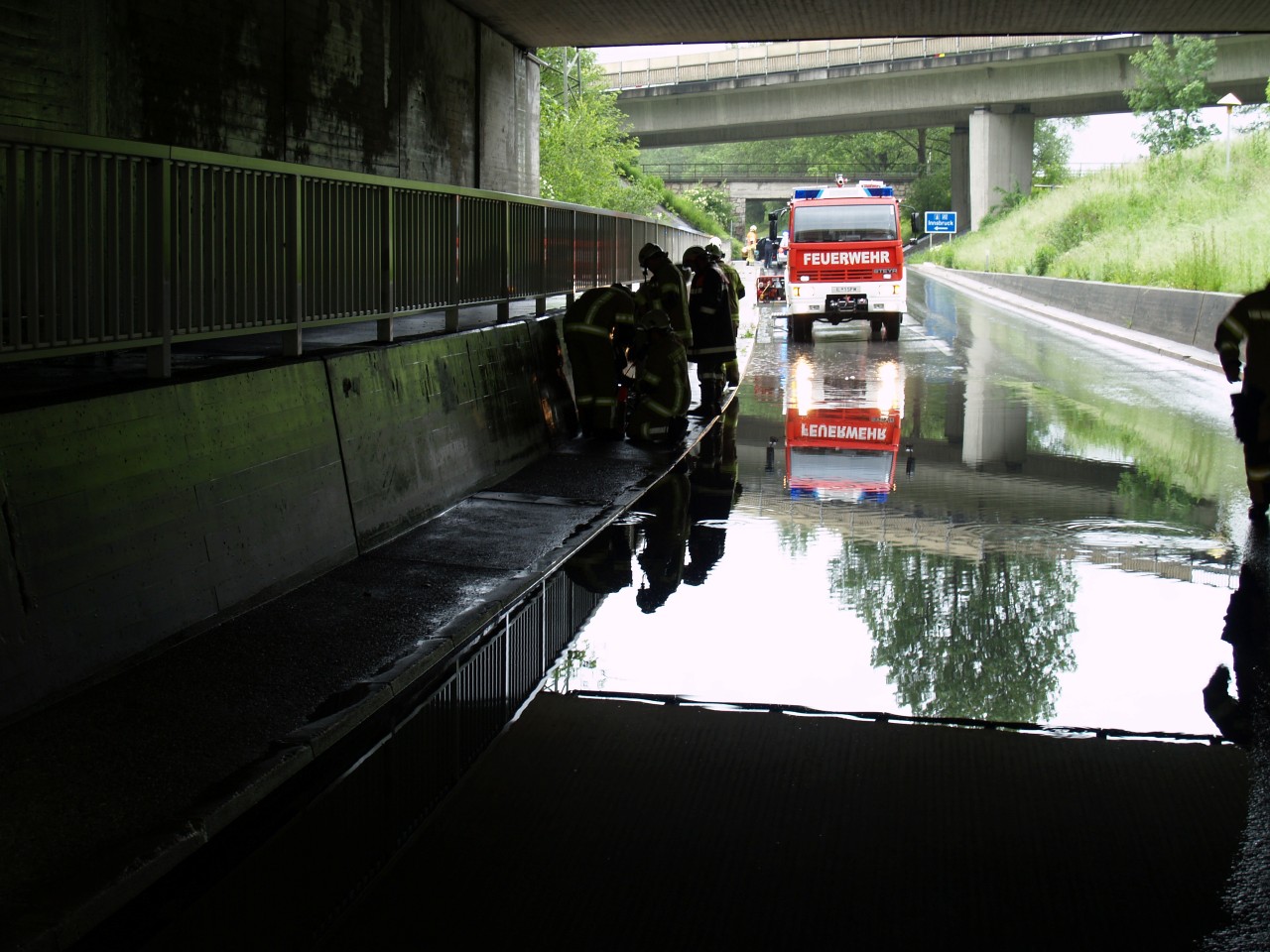 Nach ausgiebigen Regenfällen kam es zu einer Überschwemmung im Bereich der Unterführung des Autobahnzubringers auf der Sellrainer Landesstraße L13. Die Straße stand ca. 20 cm unter Wasser und der Verkehr wurde entsprechend behindert. Nach Durchführung der notwendigen Absperrmaßnahmen konnten wir das Wasser abpumpen und die Straße wieder für den Verkehr öffnen. Die defekte Pumpstation der ASFINAG wurde von Mitarbeitern der ASFINAG kontrolliert.