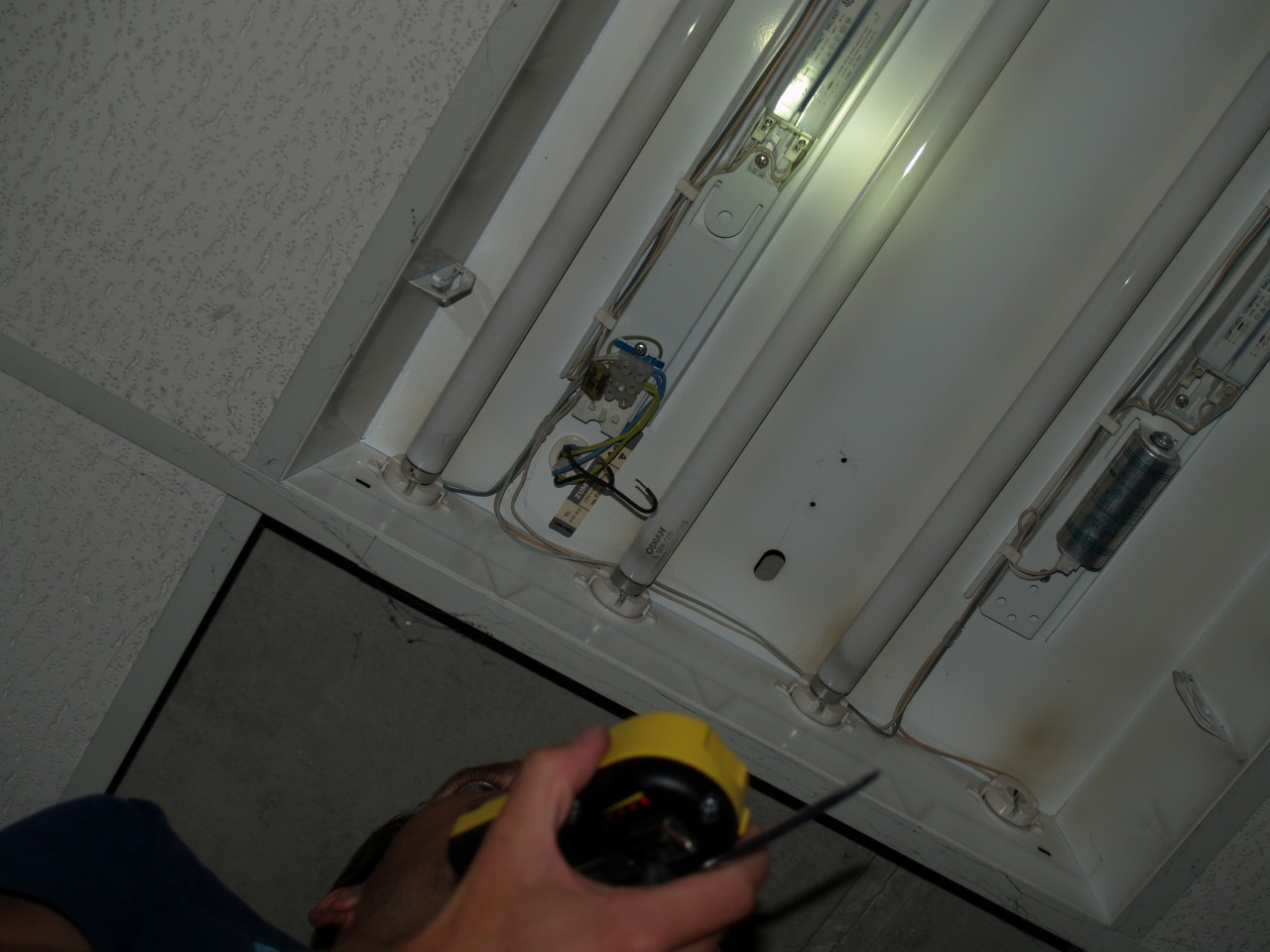 Telefonisch alarmierten sie direkt die Feuerwehr. Bei der Erkundung durch 3 Feuerwehrmitgliederkonnte keine Rauchentwicklung jedoch starker Brandgeruch festgestellt werden. Ursächlich hierfür zeigte sich ein abgebrannter Kondensator einer Leuchtstoffröhre in der Decke.