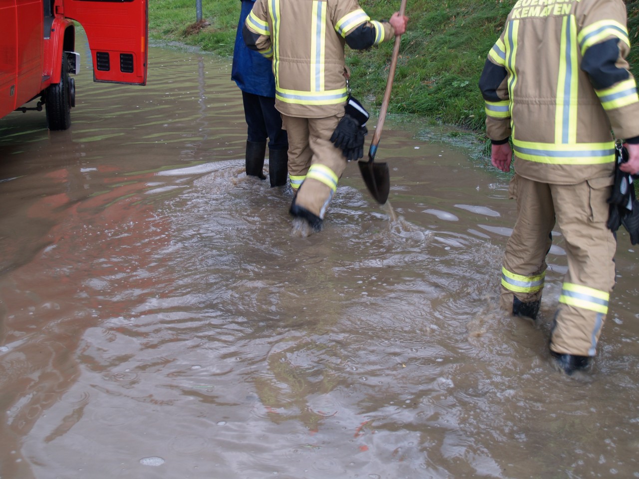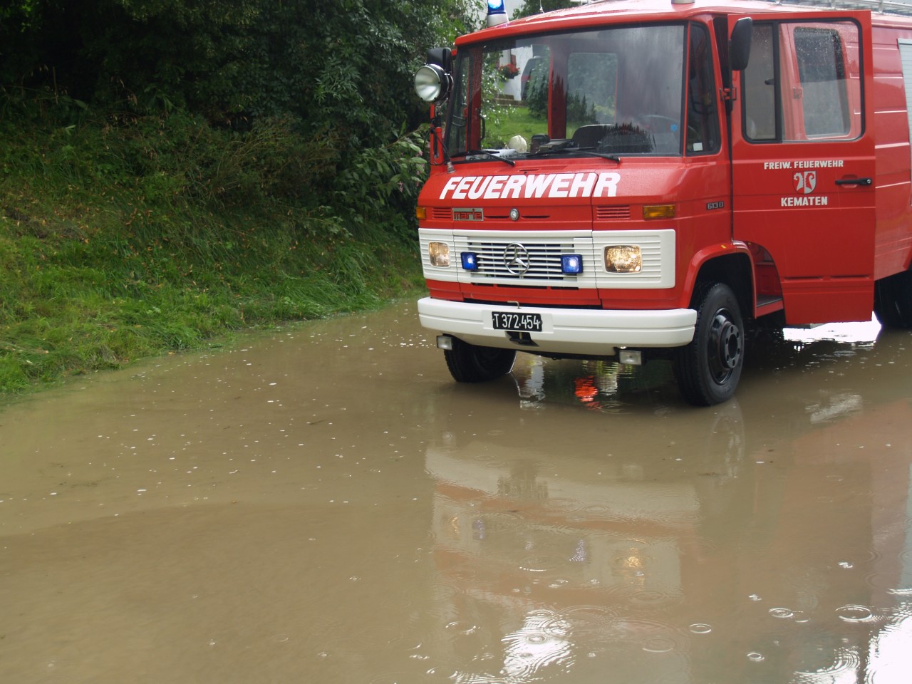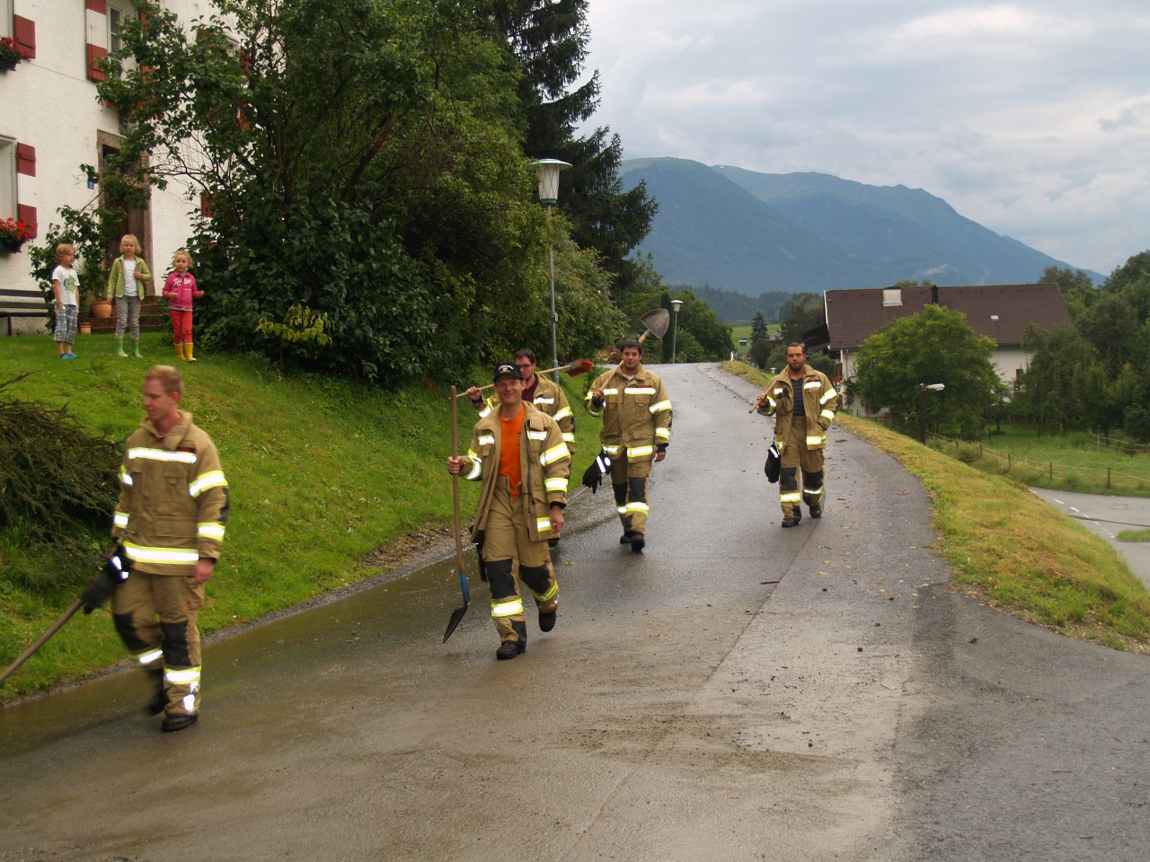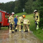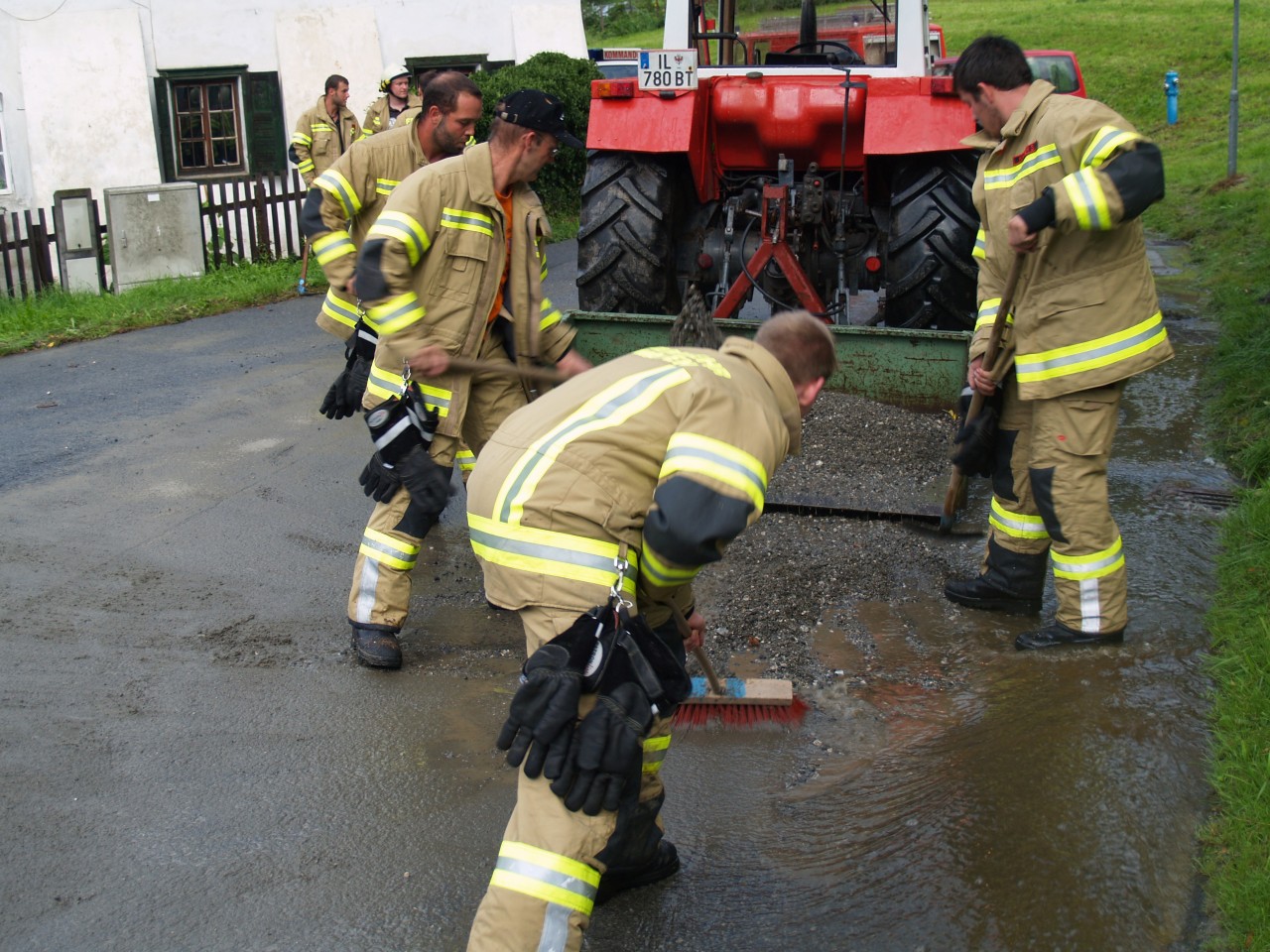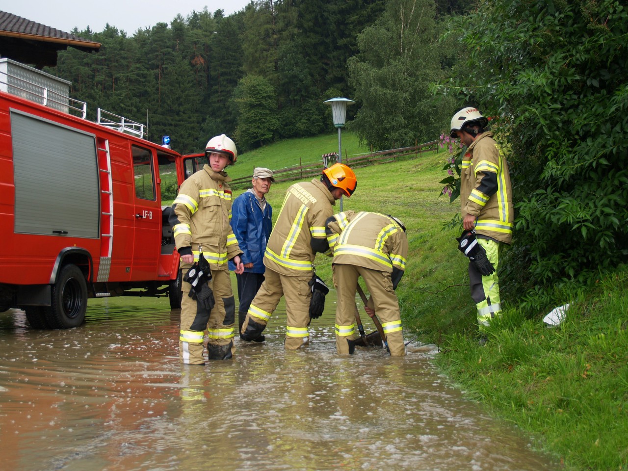 Nach heftigen Regenfällen wurde die Kommando Schleife zur Beseitigung einer großen Kiste von der Völser Landesstraße in Höhe Gärtnerei Praxmarer ausgelöst. Dies konnte rasch erledigt werden. Noch während dieser Arbeit folgte eine weitere Einsatzmeldung. In Afling, kam es zu starken Überschwemmungen der Straße, in ein Bauernhaus in der Nähe der Mariaschnee Kirche trat Wasser in den Gang ein. Durch Freiräumen der Gullis konnte die Lage rasch unter Kontrolle gebracht werden und weiteres Eindringen von Wasser verhindert werden. Der betroffene Gang wurde mit Wassersaugern gesäubert. Die Regenfälle waren so stark, dass es sogar zum Abgang einer kleinen Mure im Ortsgebiet von Afling kam. Insgesamt waren 14 Mann mit 4 Fahrzeugen ausgerückt (KDO, RLFA 2000, LF-B und LAST)