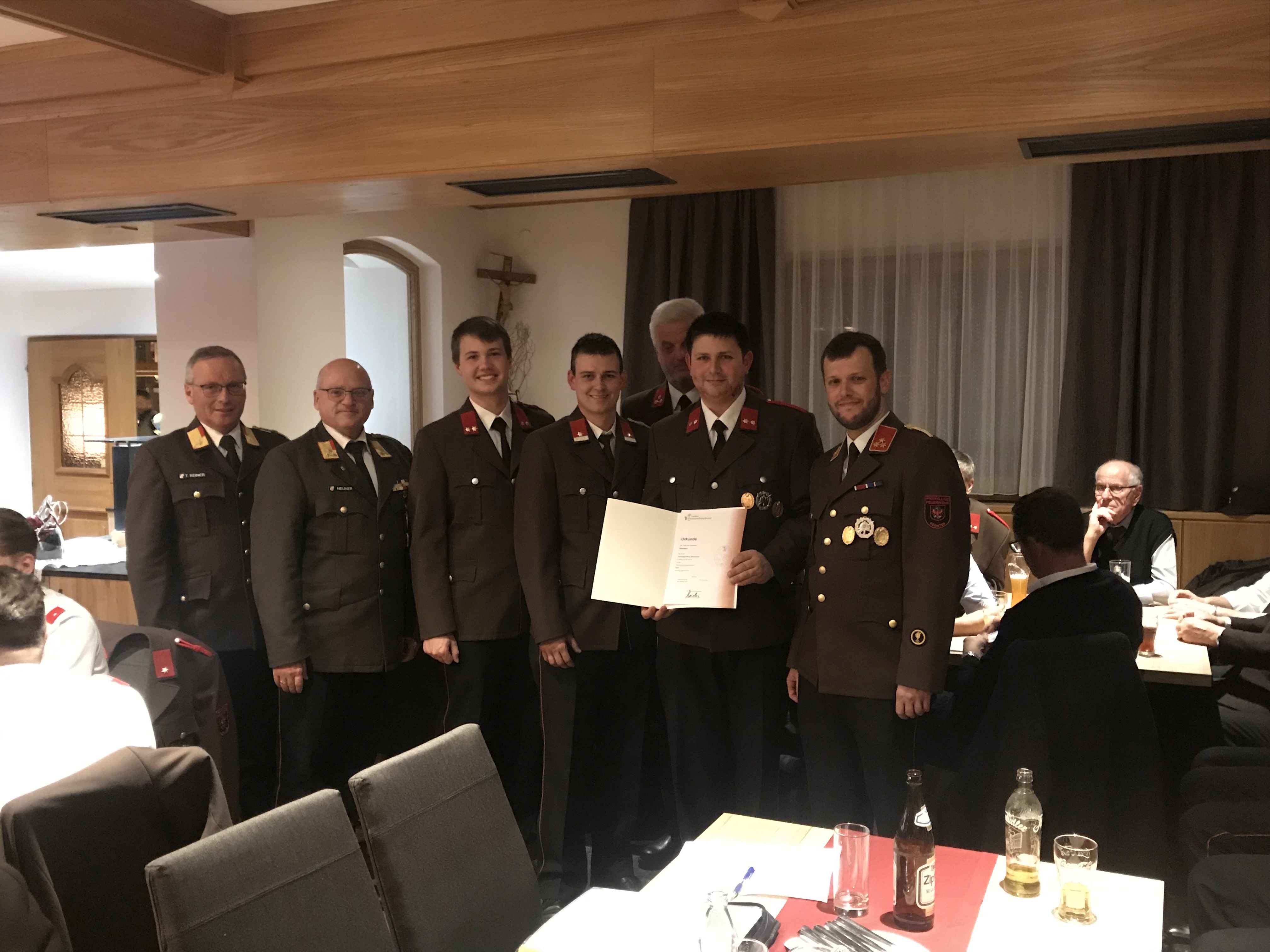 Am vergangenen Samstag fand die alljährliche Vollversammlung der Feuerwehr Kematen statt. Der Kommandant HBI Michael BUCHER begrüßte die zahlreich erschienenen Kameradinnen und Kameraden sowie die Funktionäre des Bezirksfeuerwehrverbandes, die Gemeinderäte, die Vertreter von Rotem Kreuz und der Polizei herzlich in Kematen. Nach dem Totengedenken führte der Kommandant die Anwesenden durch das vergangene Feuerwehrjahr 2019 und berichtete zu jedem Einsatz bzw. jeder Ausrückung die wesentlichen Details. Außerdem wurde der Tätigkeits- und Übungsbericht präsentiert und die große Zahl an außerordentlichen Schulungen und Ausrückungen erläutert. Nach der detaillierten Präsentation des Kassaberichtes durch den Kassier HV Rudolf BUCHER sowie des Kassarevisonsberichtes durch BGM-Stv. Klaus Gritsch wurde das Kommando und der Ausschuss durch die Vollversammlung entlastet. Des Weiteren wurde an die Feuerwehrkameraden LM Fabian KLOTZ, OFM Felix HOLZMANN und OFM Sebastian THÖNI, welche das Atemschutzleistungsabzeichen in Gold (ASLA) am 5.10.2019 in Hatting absolviert hatten, durch die Vertreter des Bezirksfeuerwehrverbandes, BFI Michael NEUNER, ABI Thomas REINER sowie unseren Bürgermeister DI (FH) Rudolf HÄUSLER und BGM-Stv. Klaus GRITSCH die Abzeichen in Gold überreicht. Im Anschluss an die Berichterstattung an die Vollversammlung übergab der Kommandant das Wort an die Ehrengäste, die ihre Grußworte sowie einige Informationen zu Sachthemen an die Versammlung richteten. Nach dem Ende des offiziellen Teils wurden wir im Gasthof Altwirt bestens verpflegt und konnten den Abend gesellig ausklingen lassen.