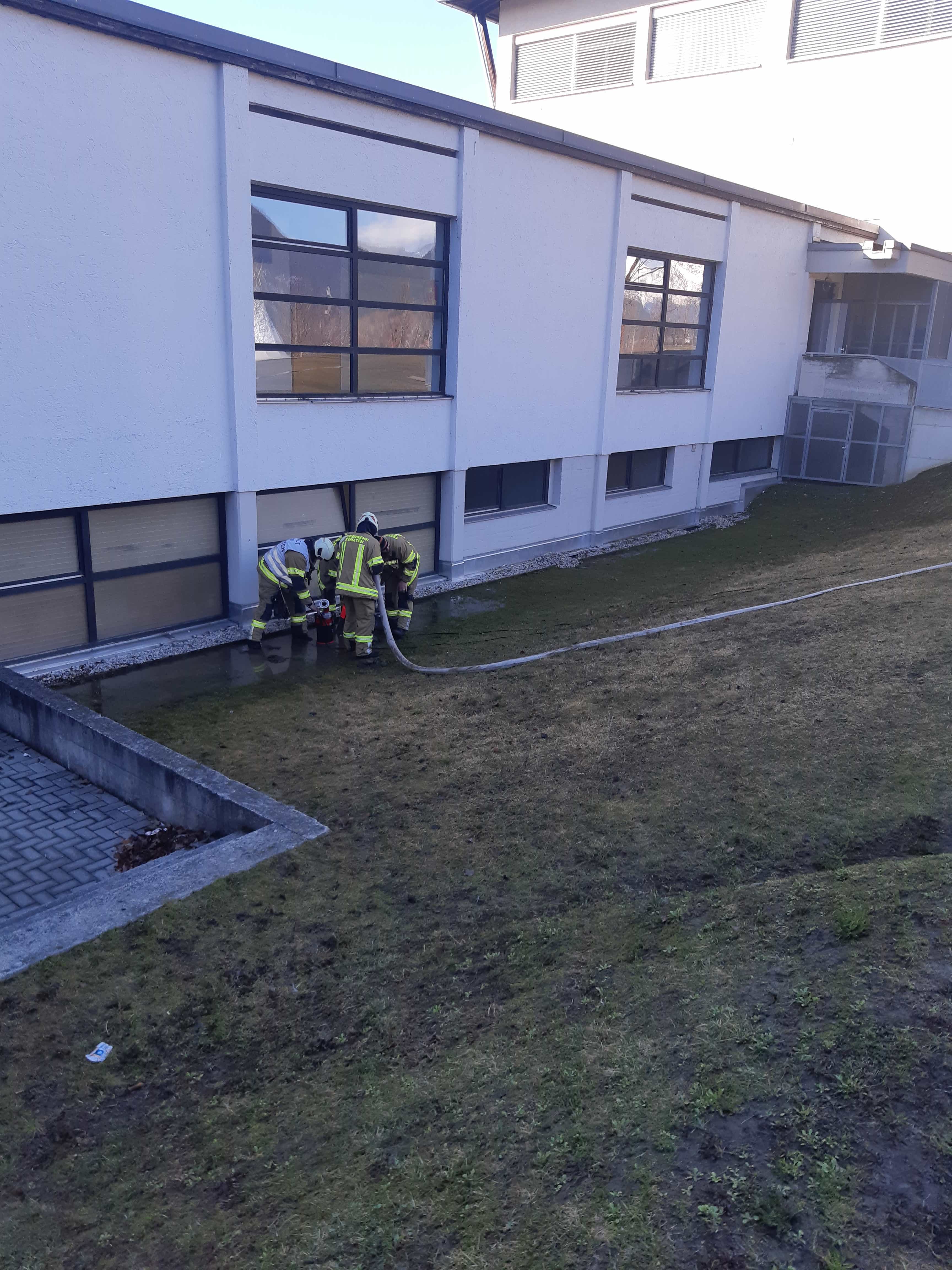 Nach einem Rohrbruch mit folgendem massiven Wasseraustritt im Bereich des Schulinnenhofes wurden wir zur Unterstützung gerufen. Mittels Wassersaugern und Tauchpumpen konnte größerer Schaden verhindert werden.