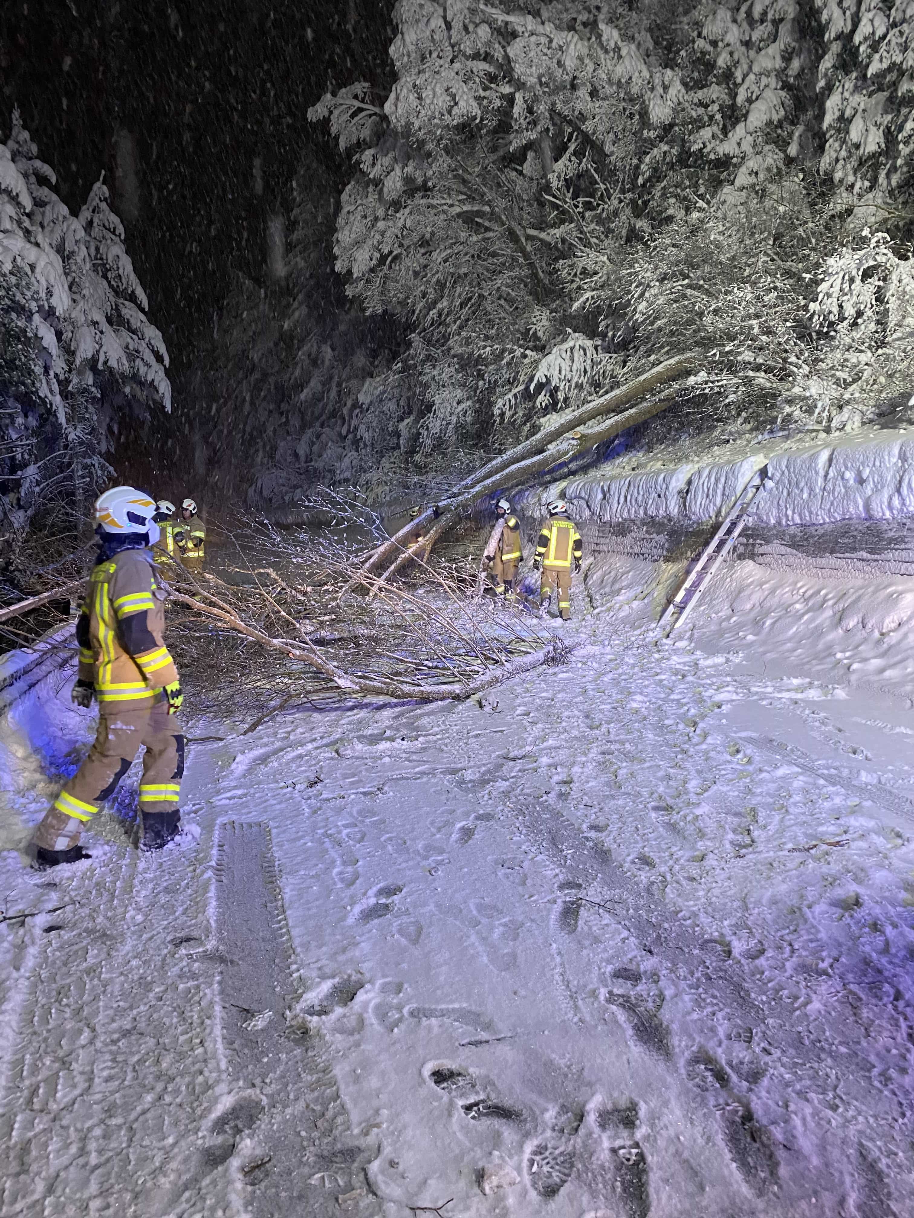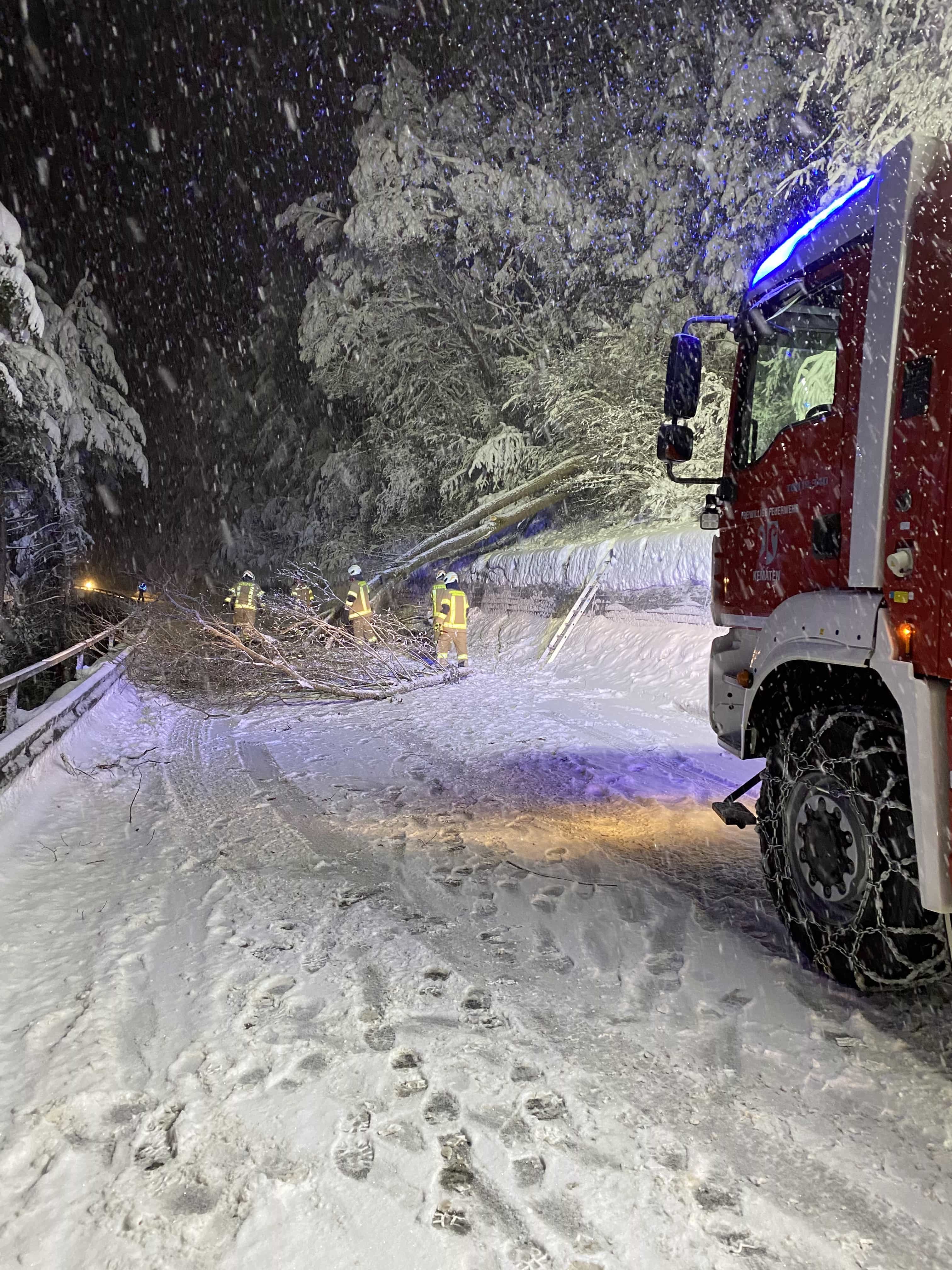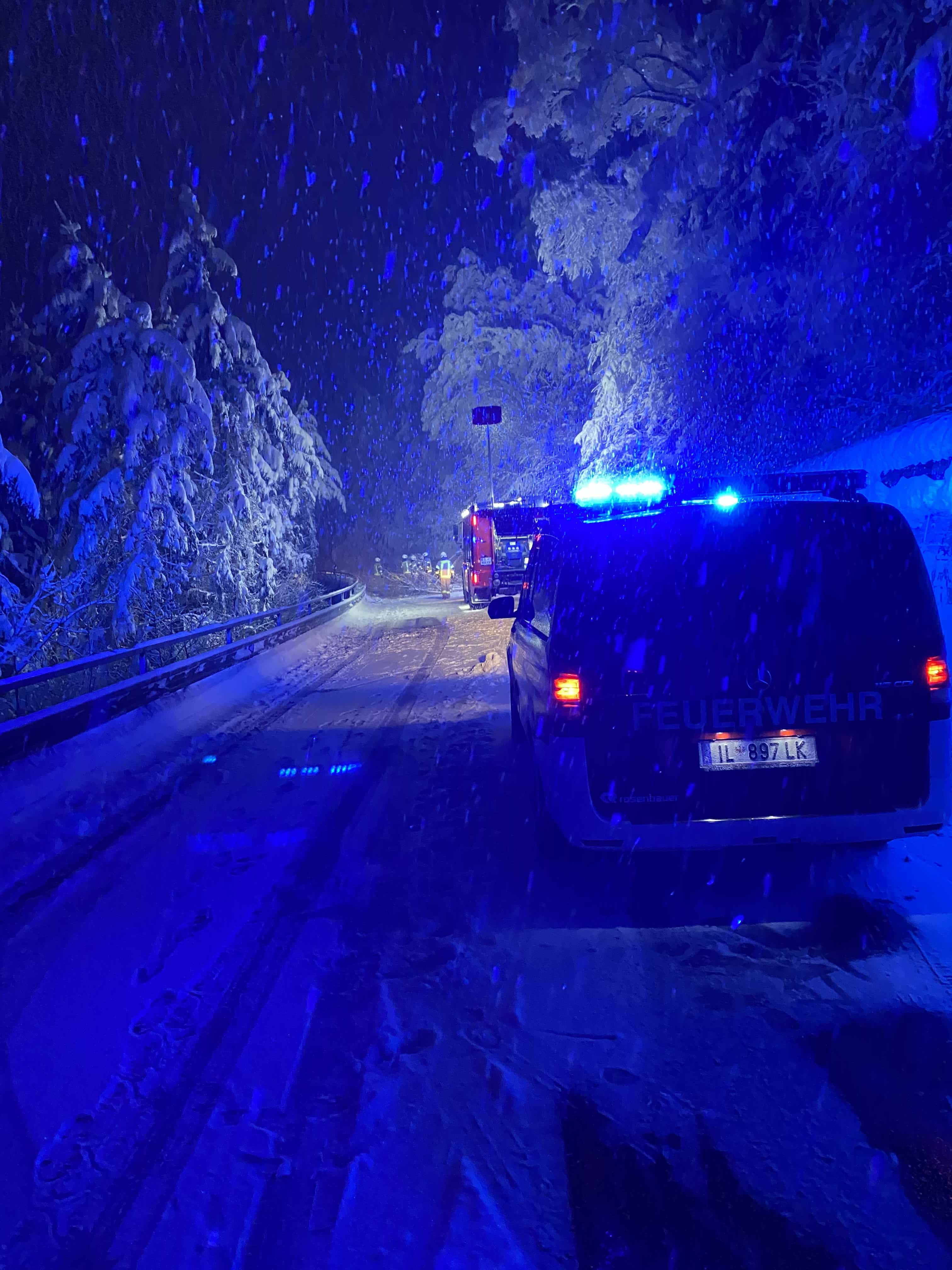 Durch den vermehrten Neuschnee stürzten am Nachmittag gegen 15:00 auf der Sellrainer Landesstraße sowie in der folgenden Nacht gegen 03:00 auf der Axamer Landesstraße Bäume auf die Fahrbahn welche durch uns entfernt wurden. Wir waren jeweils mit KDOFA, RLFA und LAST im Einsatz.